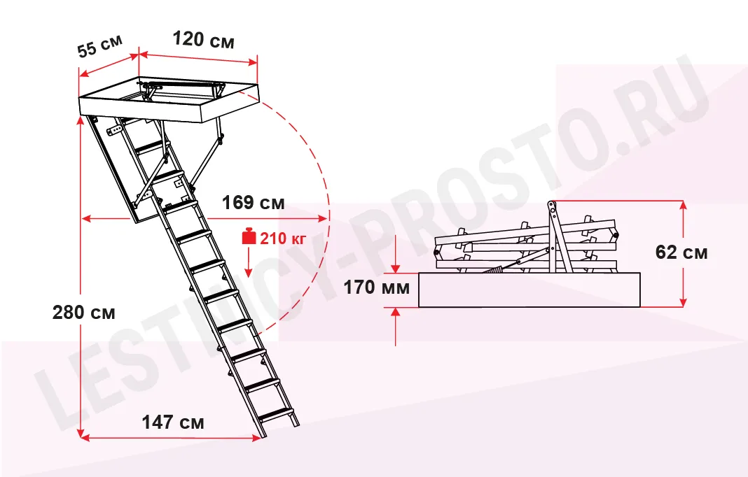 Чердачная лестница OMAN Metal T3 SUPER 55×120 см, h-280 см