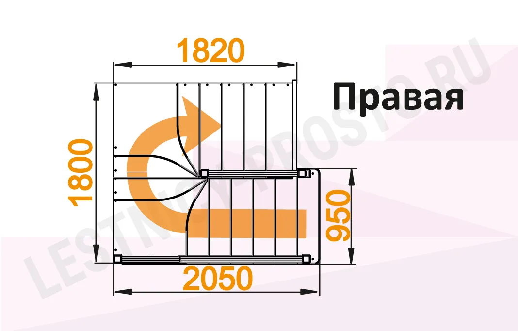 Схема лестницы К-034М с поворотом направо