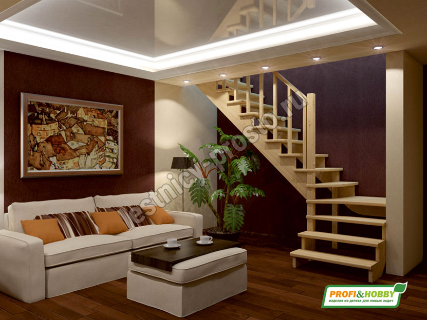 Ступени и поручень лестинцы изготовлены из бука, остальные элементы из сосны.