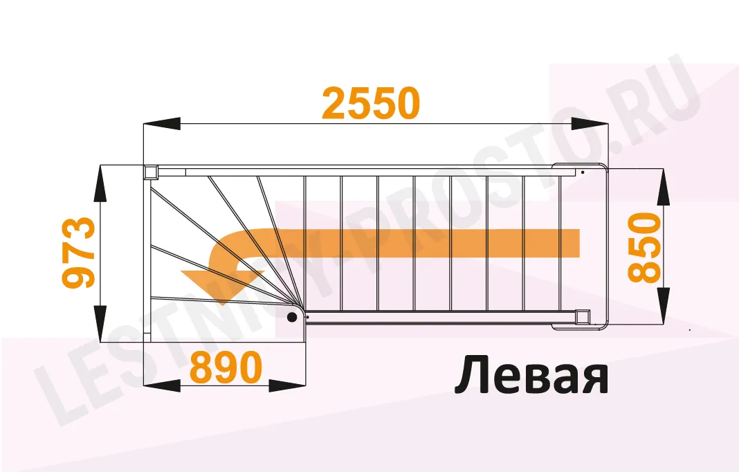 Схема лестницы ЛС-215М с поворотом налево