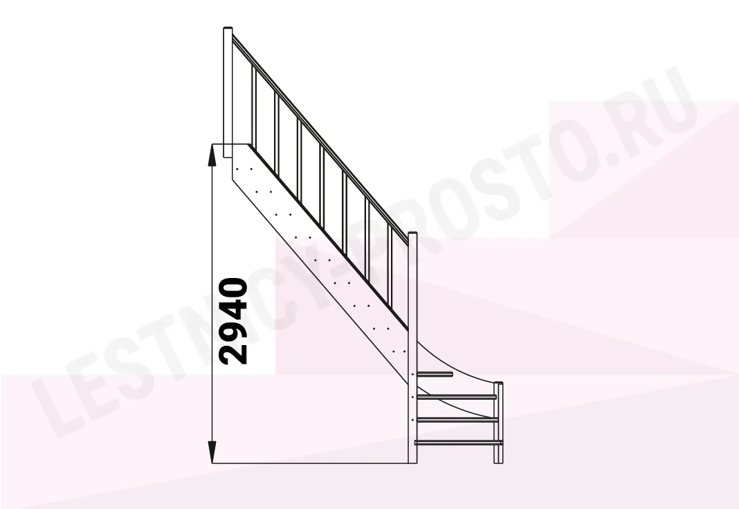 Базовый комплект включает в себя деревянные элементы лестницы и ограждения без какого-либо покрытия. Лестница под покраску изготовлена из сосны с небольшими участками синевы, которая мало влияет на механические свойства материала и практически незаметна при покраске лестницы в тёмные цвета, однако позволяет снизить стоимость готовой лестницы, по эксплуатационным свойствам ничем не отличающейся от более дорогого аналога.