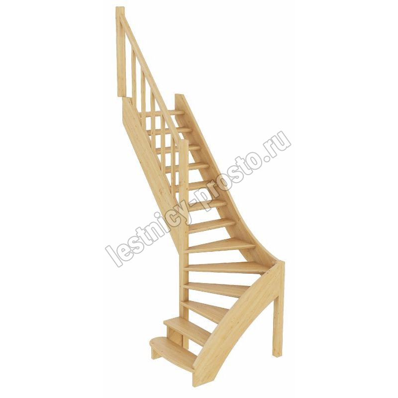 Базовый комплект включает в себя деревянные элементы лестницы и ограждения без какого-либо покрытия.