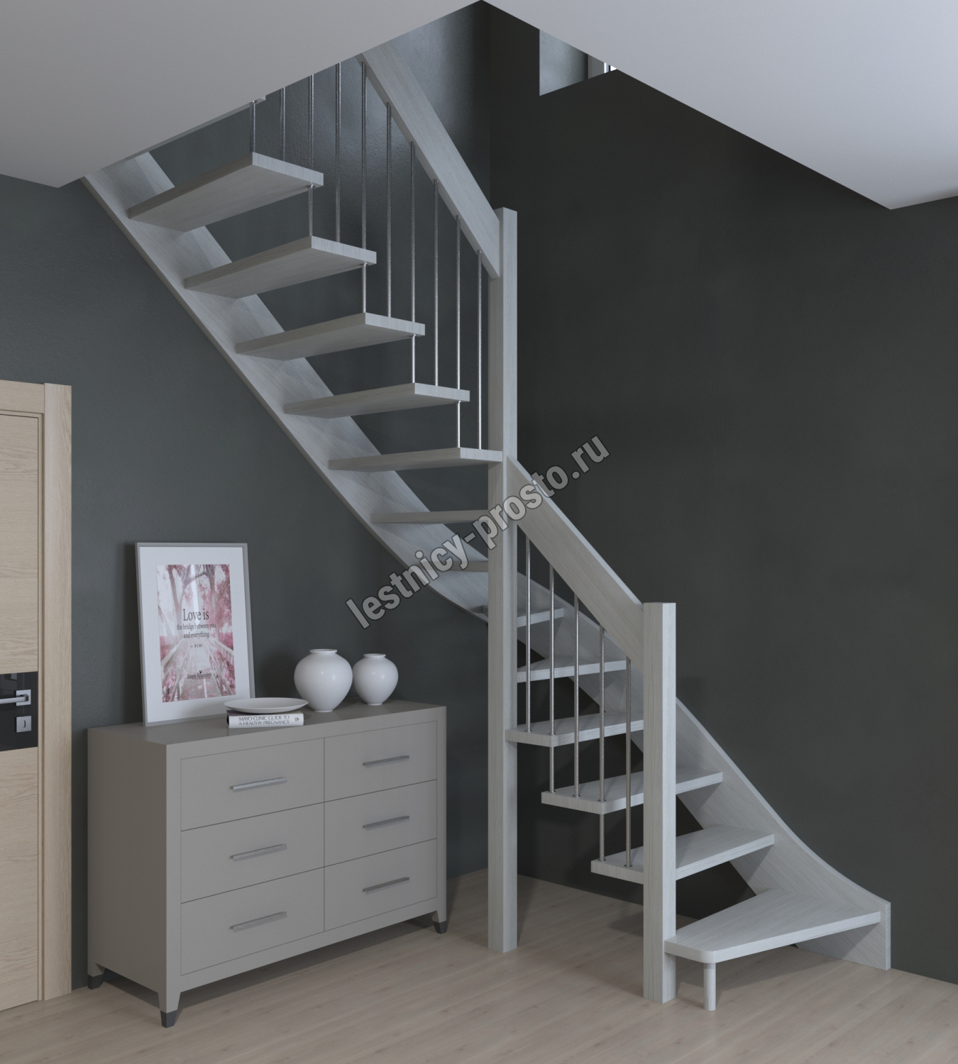 Лестница Prosto Console г-образная забежная дуб, h320 см