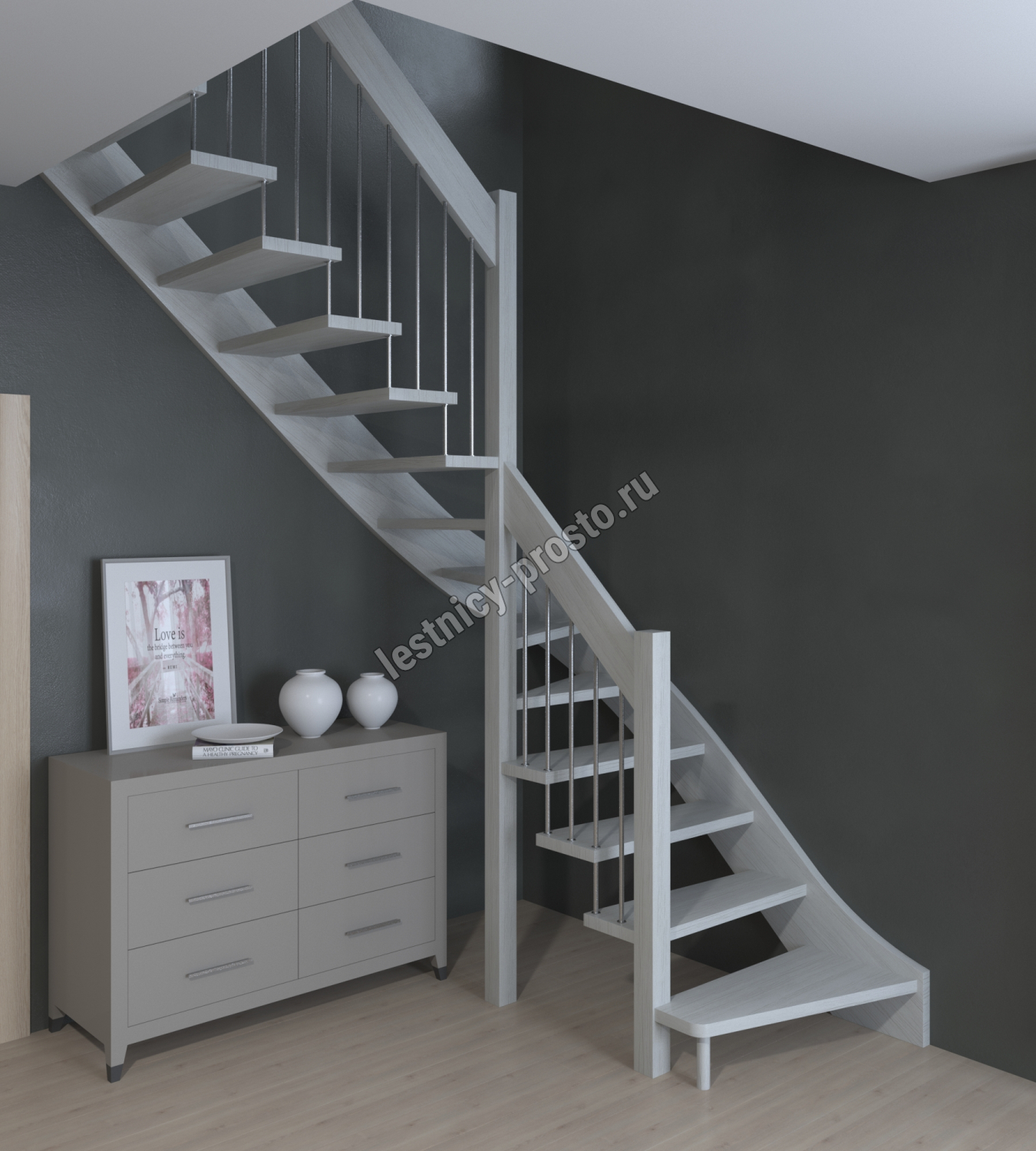 Лестница Prosto Console г-образная забежная сосна, h300 см