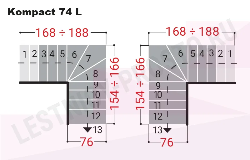 Модульная лестница Kompact 74 Г-образная