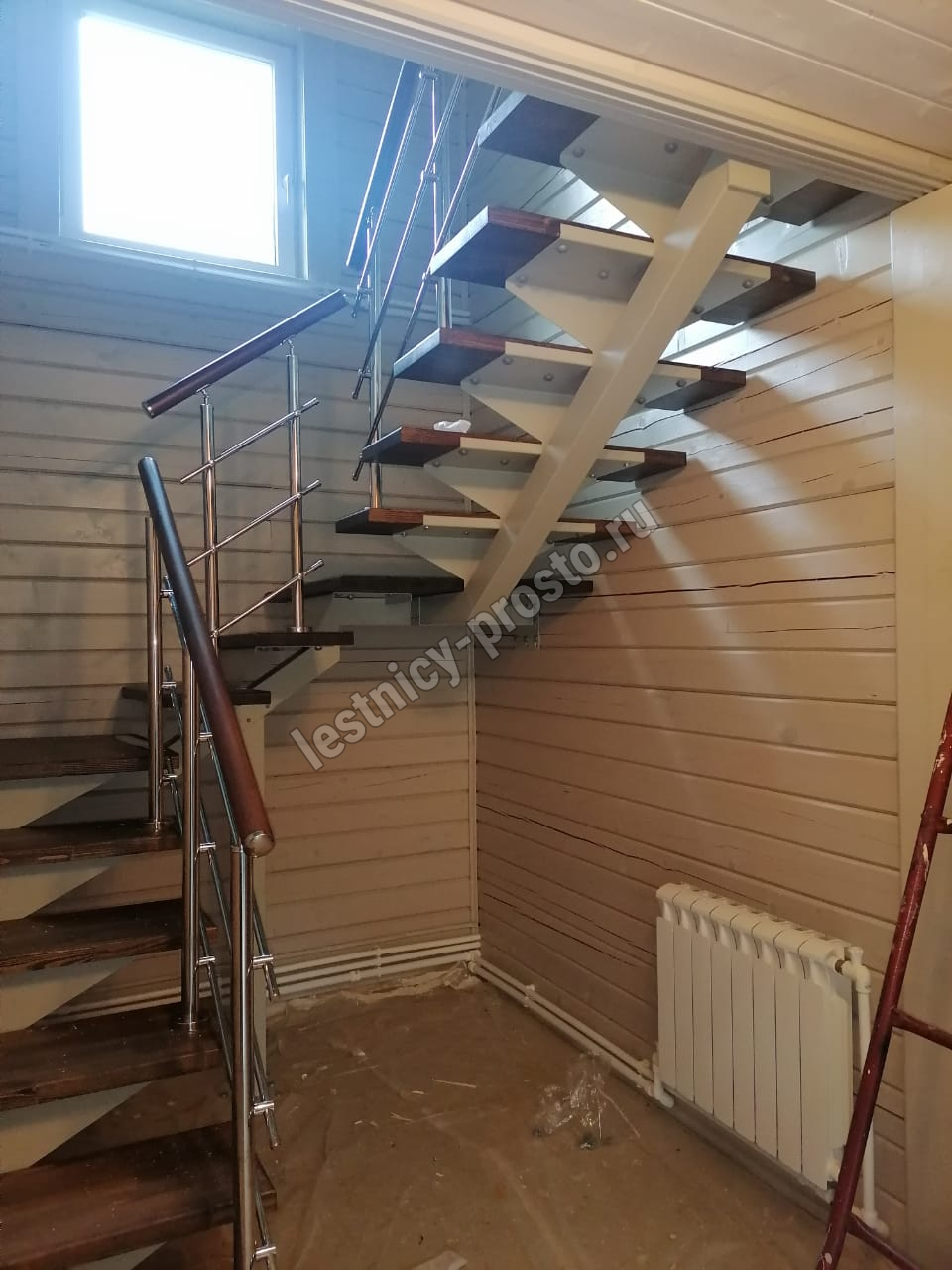 Конструкция представляет собой стальной монокосоур, на который крепятся ступени из выбранной породы дерева.