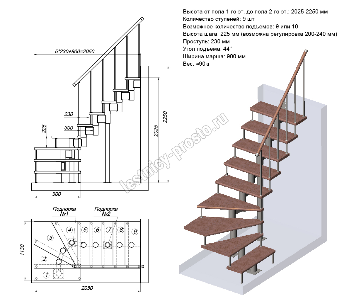 Стоимость указана для комплекта из модульного каркаса и деревянных ступеней без покрытия (ограждение можно выбрать отдельно)