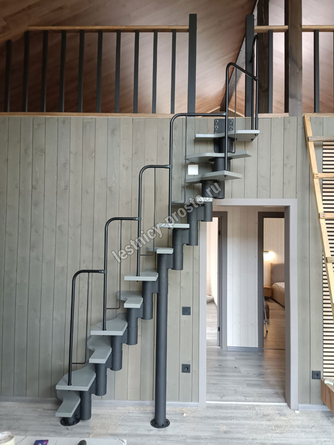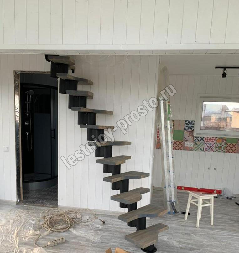 Лестница Prosto Urban Black гусиный шаг 700 мм, h234-336 см (13 ступеней), дуб