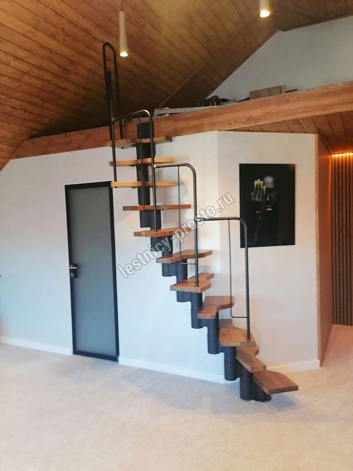 -Возможность установить лестницу как прямую, так и с поворотом внизу или вверху; при этом нужно понимать, что поворот менее удобен, чем прямой участок лестницы.
