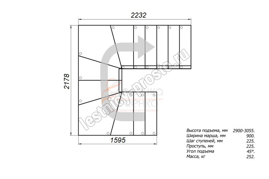 Модульная лестница Спринт 225 2925-3055, Черный, Сосна, Крашеная