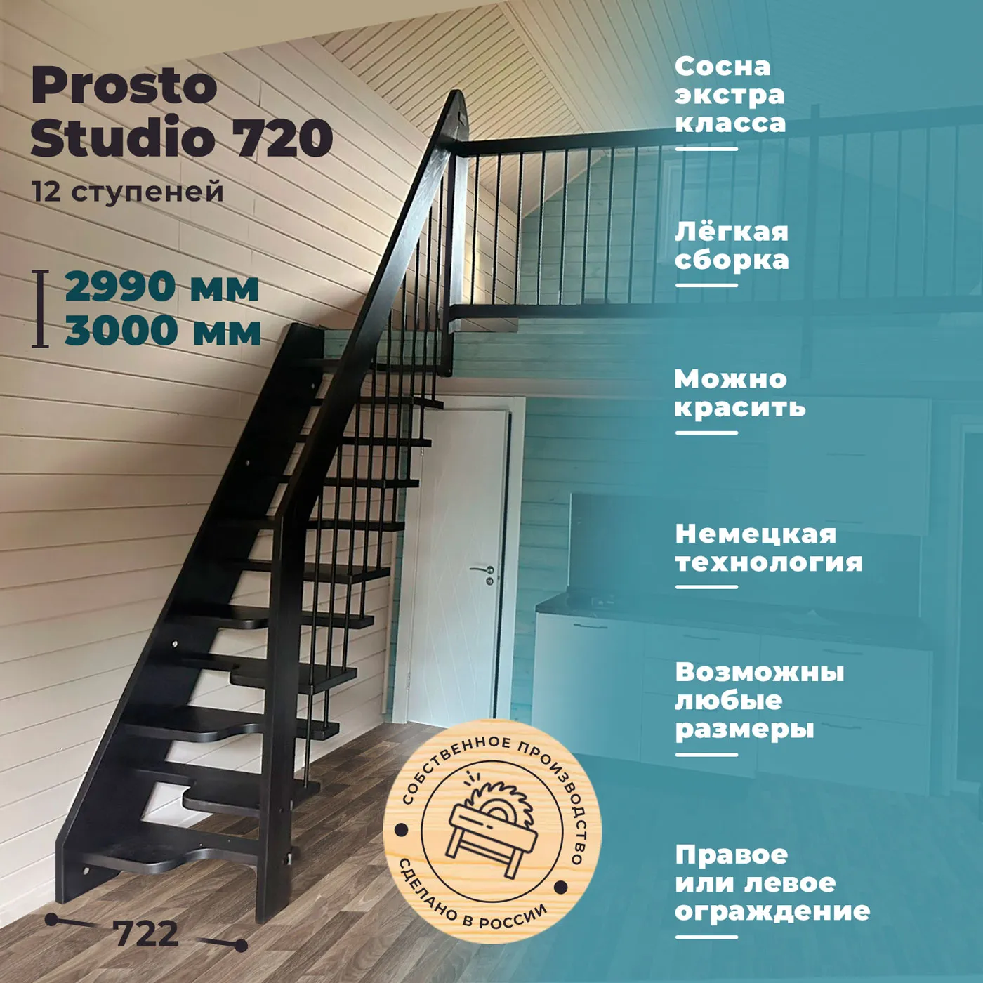 Модульная малогабаритная лестница Эксклюзив 3150-3375, Черный, Бук, Нержавеющая сталь