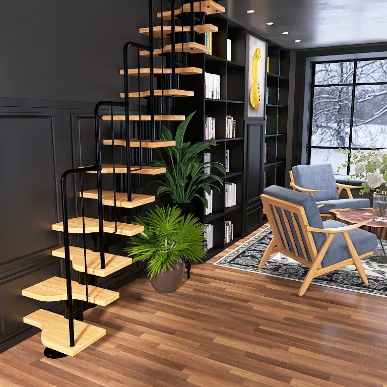 Модульная малогабаритная лестница Компакт 2700-2925, Черный, Лиственница, Крашеная