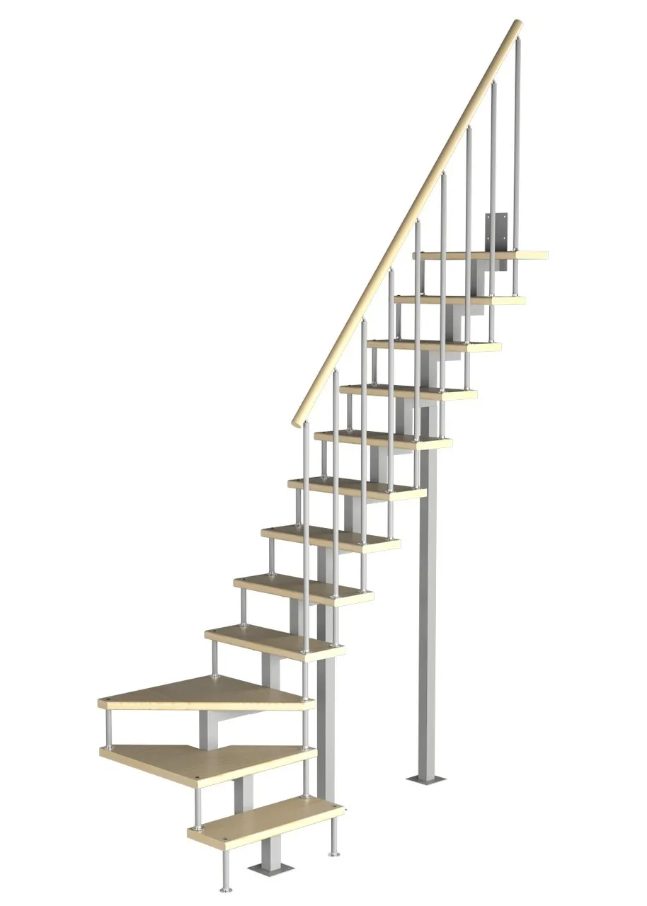 Модульная малогабаритная лестница Компакт 3150-3375, Белый, Сосна, Нержавеющая сталь