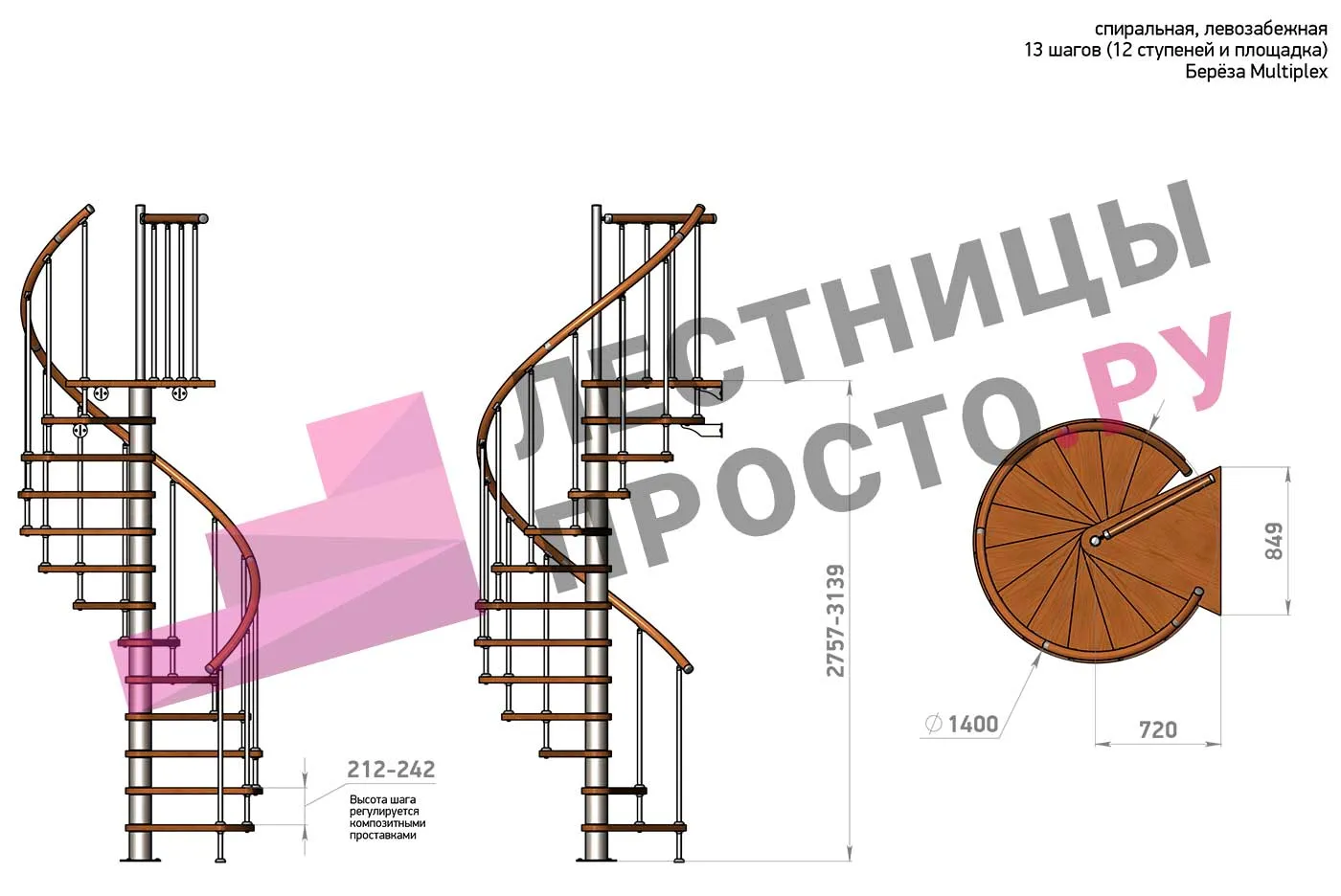 Решение об ориентации поворота лестницы принимается при сборке (комплект собирается и в правозабежную, и в левозабежную лестницу)