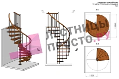 Винтовая лестница Prosto Spiral Black D160см, h260.5-304.6 см, бук