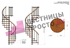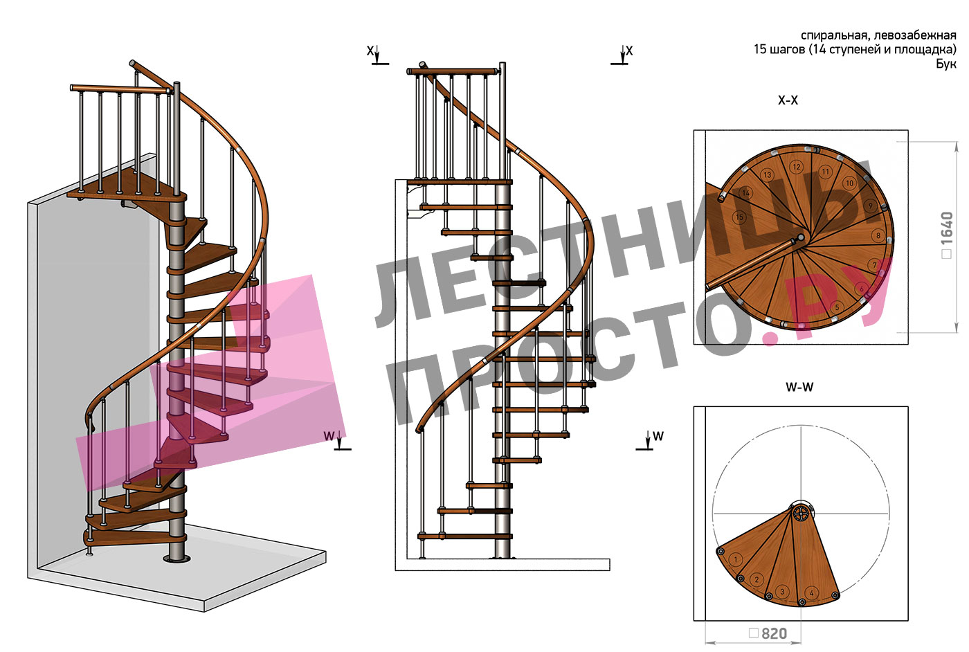 Ширина ступени между центральной колонной и поручнем ≈ 680 мм