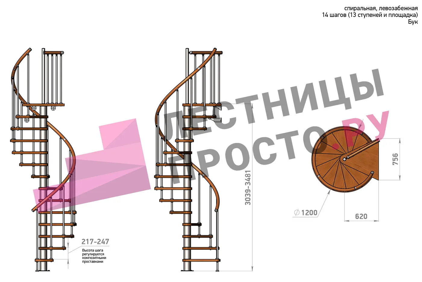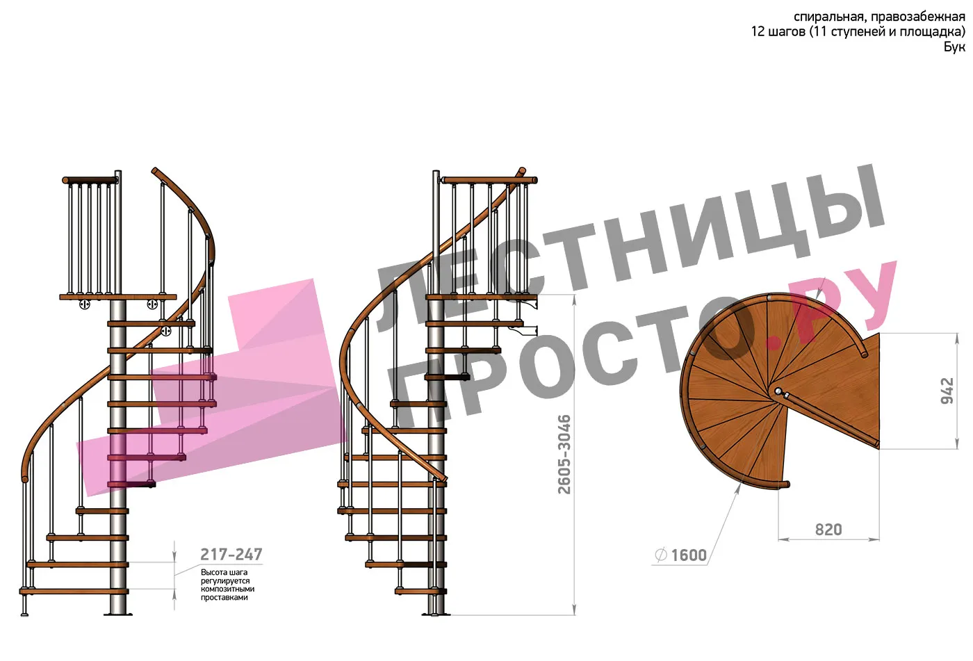 Высота ступеней регулируется с шагом 3 мм. в пределах 217-247 мм., благодаря чему, лестница прекрасно подгоняется под необходимую высоту.