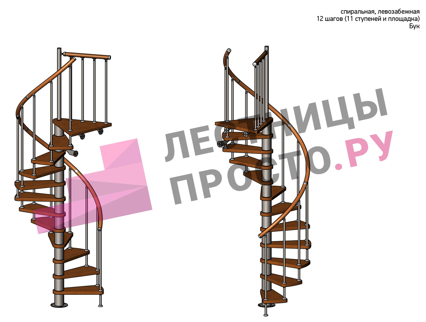 Винтовая лестница Prosto Spiral White D120см, h260.5-304.6 см, бук