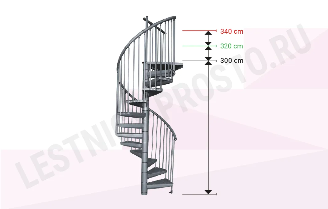 Благодаря возможности регулировать высоту шага с помощью пластиковых вставок (входят в базовый комплект), высоту лестницы можно варьировать в пределах от 2730 до 3000 мм. Ступени лестницы изготовлены со специальным, антискользящим рельефом.