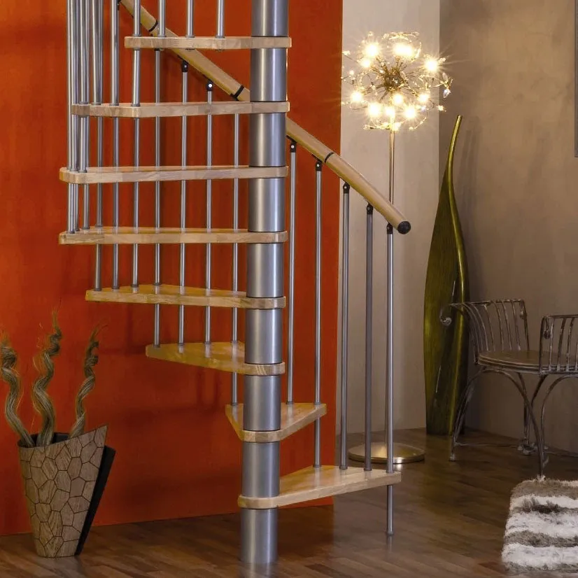 Винтовая лестница SPIRAL WOOD d140 см, серебро, лакированный бук