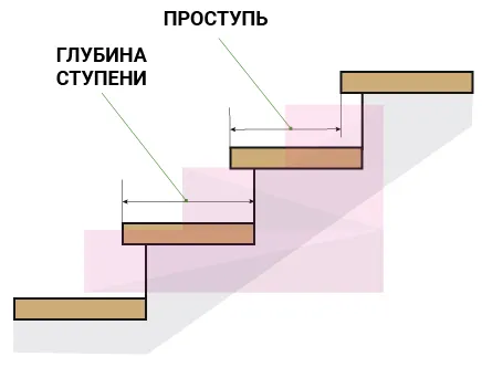 Ширина ступени (проступи) горизонтальное расстояние, которое измеряется между передними кромками соседних ступеней вдоль средней линии лестничного марша.